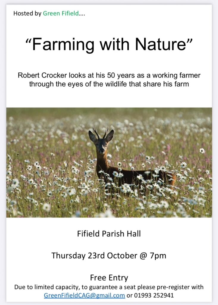 A fascinating evening’s talk from local farmer and campaigner, Robert Crocker. Known for his campaigns for farmland hedges (as written up here in the Oxford Mail in 2016), Robert speaks from experience as a landowner, trustee of The Wychwood Forest Trust and farmer of the challenges of balancing nature and food (and finances).